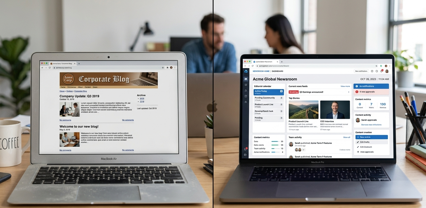 Blogs had editorial rigour. Customer resource centres were structured for discovery, not just compliance. Executive content carried a deliberate narrative arc that connected product launches to customer outcomes to market perspective. Product storytelling wasn't an afterthought bolted onto launch week — it was part of a sustained publishing rhythm.
